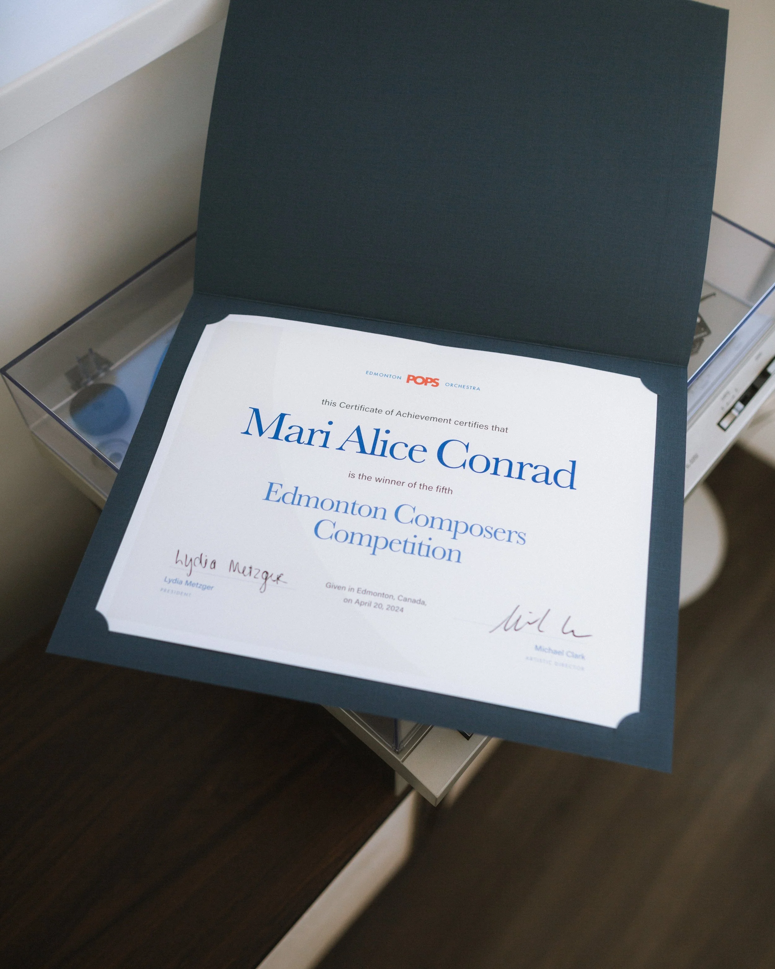 Congratulations to Mari Alice Conrad for winning the latest edition of the Edmonton Composers Competition! The Edmonton Pops Orchestra premiered her piece “Atalanta’s Race: The Forest” at the Johann Strauss Foundation Ball in April 2024.